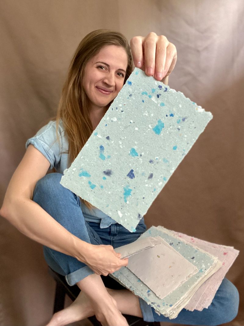 Kelly is the owner and messy hands behind Rocky Woods Studio. With a primary focus on sustainability, she specializes in crafting unique papers made entirely out of paper scraps for original artwork, greeting cards, prints and custom colored wedding stationery.